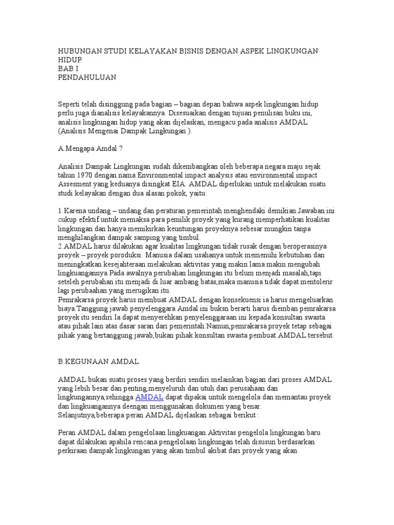 Hubungan Studi Kelayakan Bisnis Dengan Aspek Lingkungan Hidup | PDF