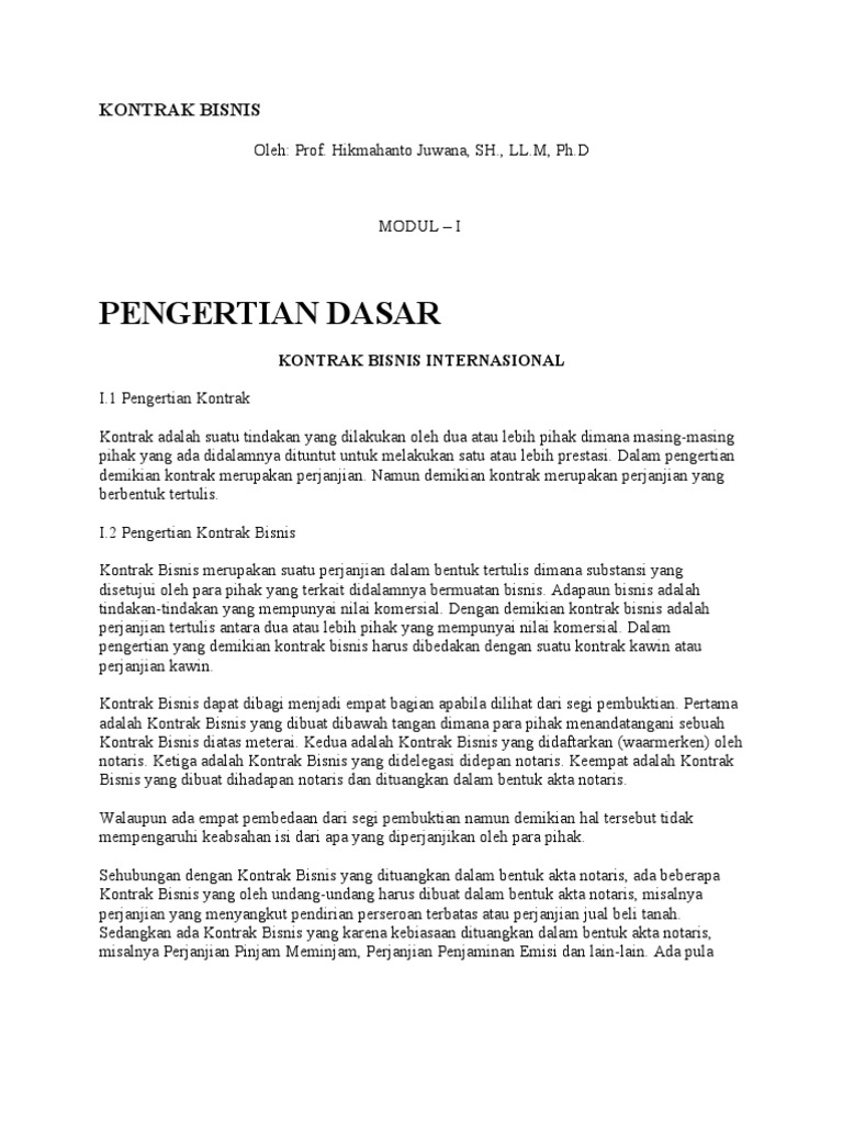 Contoh kontrak bisnis pdf. Contract for Sale of Goods - Free download as Word Doc (.doc), PDF File (.pdf), Text File (.txt) or read online for free. Contoh Kontrak negosiasi Ekspor. Istilah kontrak dipakai dalam praktek bisnis selain istilah perjanjian dan persetujuan. Kerancuan akan istilah kontrak atau perjanjian masih sering diketemukan dalam praktek bisnis. Pelaku bisnis memahami bahwa kedua istilah antara perjanjian dan kontrak mempunyai pengertian yang berbeda. ... Contoh 4 : Surat Perjanjian Kerjasama Bagi Hasil Usaha. Pada dasarnya surat perjanjian kerjasama bagi hasil usaha merupakan bukti tertulis yang menunjukkan adanya keinginan yang berasal dari kedua belah pihak atau lebih untuk berkolaborasi atau melakukan kerjasama usaha atau bisnis namun salah satu pihak hanya memiliki cukup modal dana saja. mengumpulkan berbagai contoh kontrak yang ada di kantor Notaris/PPAT; Mahasiswa di dalam kelompok dapat menyusun mini paper / assignment hasil studi lapangan ke ... Bisnis - Menata Bisnis Modern di Era Global, Citra Aditya Bakti, Bandung. 12. Hasanuddin Rahman, 2000, Legal Drafting, Citra Aditya Bakti, Bandung. 13. ...