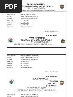 Prasasti Adalah - Pengertian, Sejarah, Fungsi, Yupa Dan Contohnya - Prasasti adalah Sebuah piagam atau dokumen yang sengaja ditulis pada bahan yang keras dan tahan lama (batu, Dinding, Kramik, Dll). Penemuan prasasti pada sejumlah situs arkeologi, menandai akhir prasejarah, adegan dari sejarah kuno Indonesia yang orang tidak akrab dengan menulis, ke era sejarah, dimana masyarakatnya sudah ... Pengelolaan Keuangan Desa sebagai rangkaian kegiatan, diawali dengan kegiatan Perencanaan, yaitu penyusunan APBDesa. Dengan demikian, penting untuk memahami secara tepat berbagai aspek APBDesa: fungsi, ketentuan, struktur, sampai mekanisme penyusunannya, sebagaimana diuraikan berikut ini. Contoh proposal kegiatan dana desa format doc Bila kamu tidak ingin repot membuat proposal kegiatan dari awal, maka bisa mengunduh format dibawah ini dalam bentuk doc, bisa diedit melalui ms word sesuai kebutuhan dan jenis kegiatan desanya. Silahkan scrool saja untuk melihat : prasasti dana desa membantu mewujudkan transparansi penggunaan dana desa