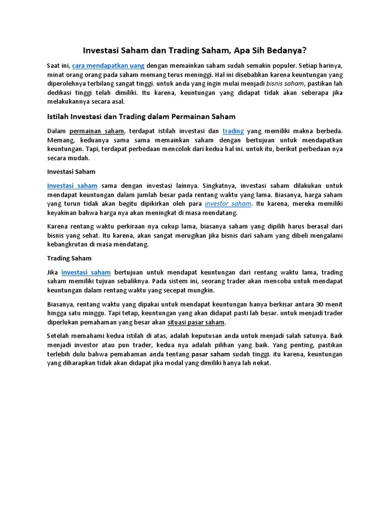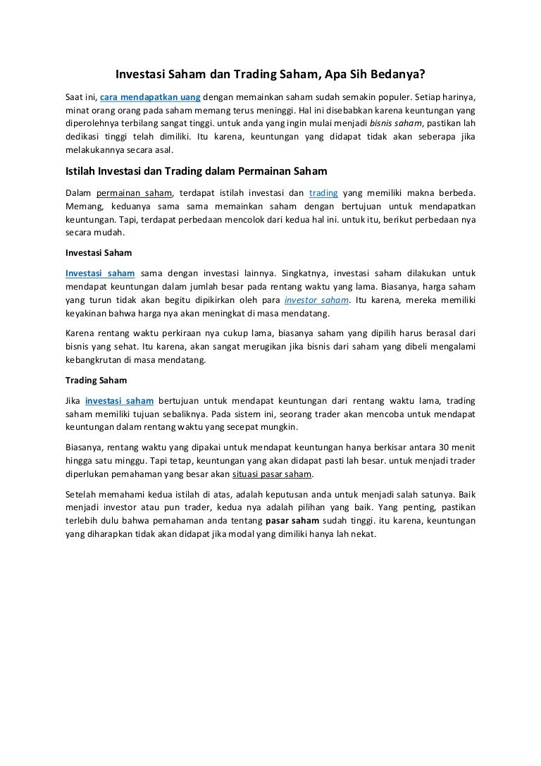 Investasi Saham Dan Trading Saham Apa Sih Bedanya Pdf
