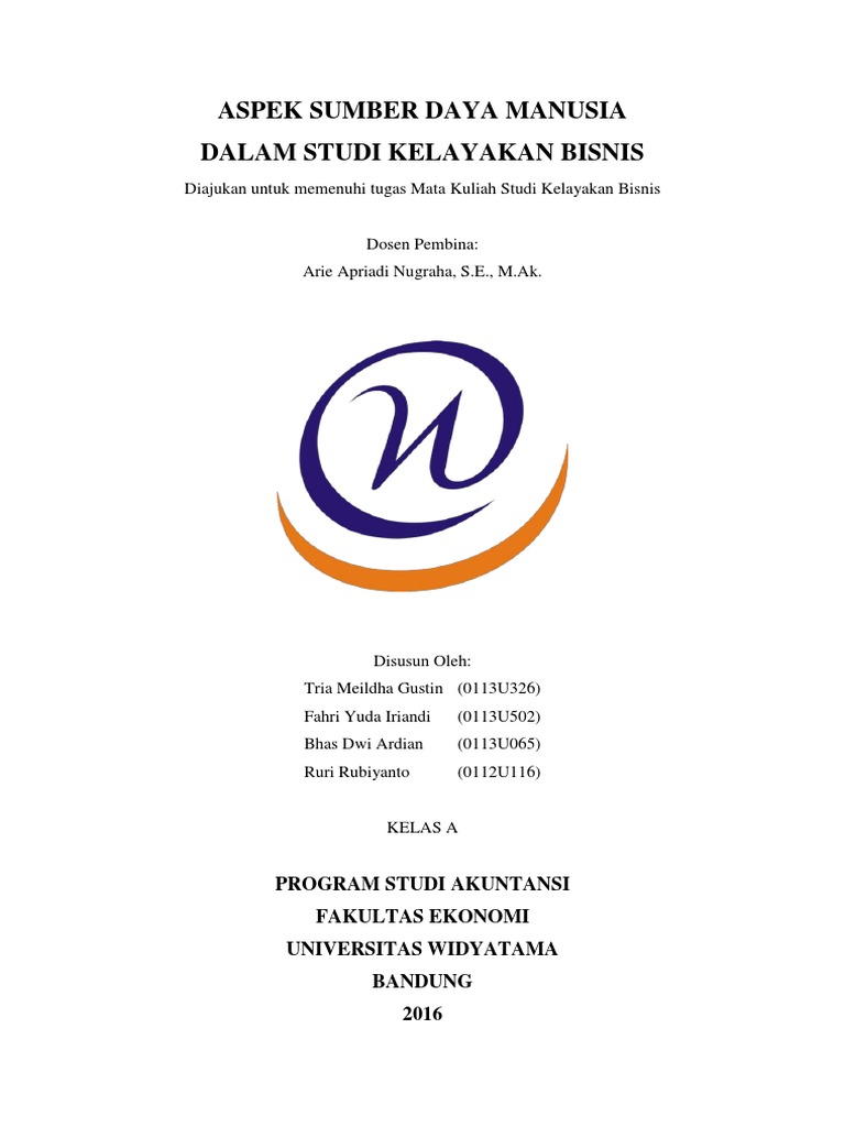 Aspek sdm dalam studi kelayakan bisnis. ASPEK SUMBER DAYA MANUSIA DALAM STUDI KELAYAKAN. BISNIS. MAKALAH. Diajukan sebagai salah satu tugas untuk memenuhi nilai mata kuliah Studi ASPEK SUMBER DAYA MANUSIA. DALAM STUDI KELAYAKAN BISNIS. Disusun OLeh. Kelompok 5. Muh. Aqsal Sahid 90500119057. Tanti Insani Qiblati 90500119062 21 Jan 2021 — Pentingnya Aspek SDM Dalam Studi Kelayakan Bisnis · Kebutuhan Aspek SDM Berkualitas Saat Ini · Membangun SDM Sesuai Kapasitas Bisnis · Hubungan ... Kajiannya dapat dimulai dari perencanaan SDM, analisis pekerjaan, rekrutmen, orientasi, sampai pada pemutusan hubungan kerja. I.II RUMUSAN MASALAH A.