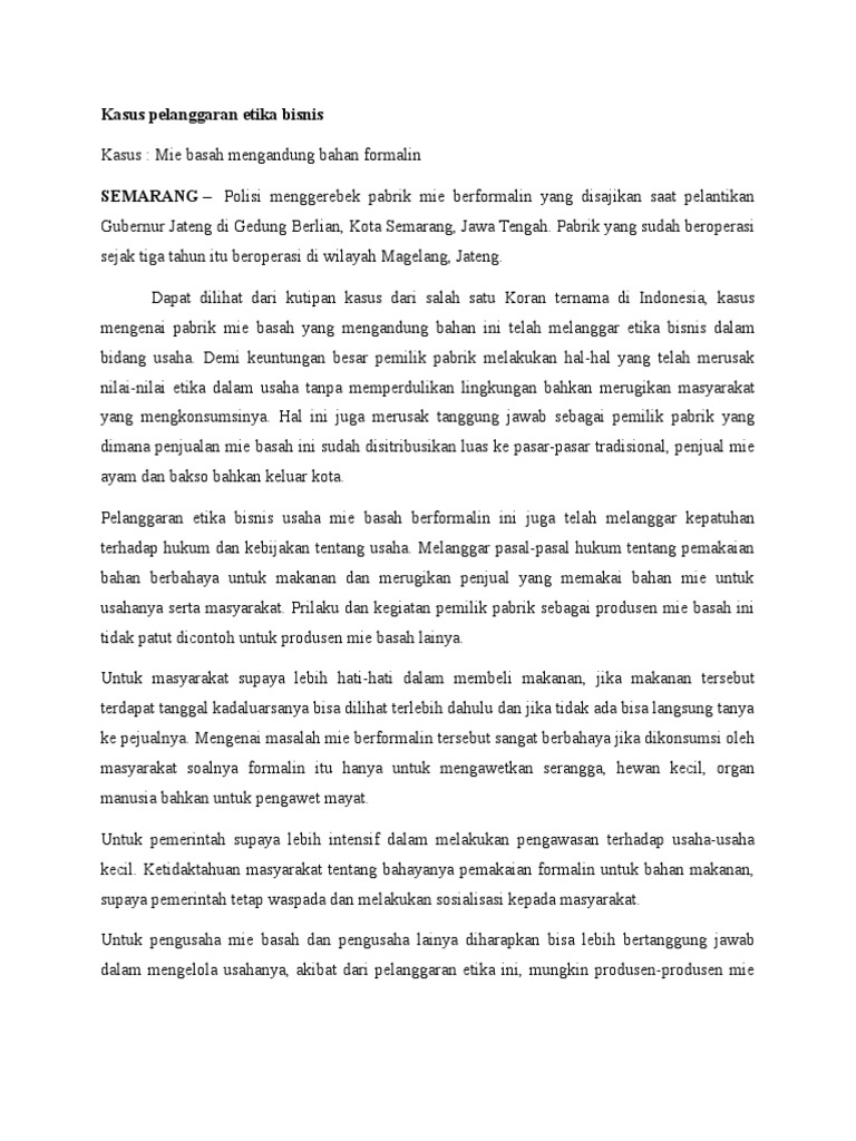 Kasus Pelanggaraan Etika Bisnis Studi Kasus Mi Basah Yang Mengandung Bahan Formalin Juniorsuryadilaga S Blog
