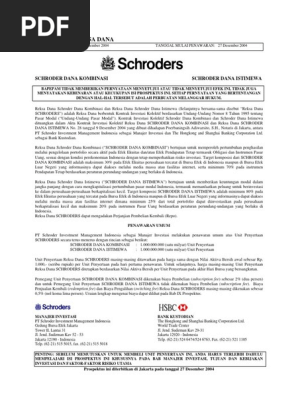 Schroder Dana Istimewa. Factsheet - HSBC Indonesia. Factsheet - HSBC Indonesia. Schroder Global Sharia Equity Fund (USD). Schroder Dana Mantap Plus II. Schroder Prestasi Gebyar Indonesia II.