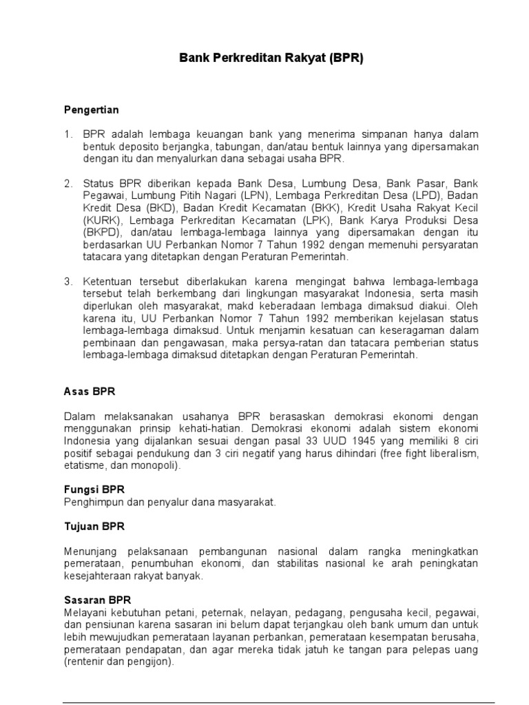 BPR memiliki ciri khas yaitu salah satu layanan masyarakat ...
