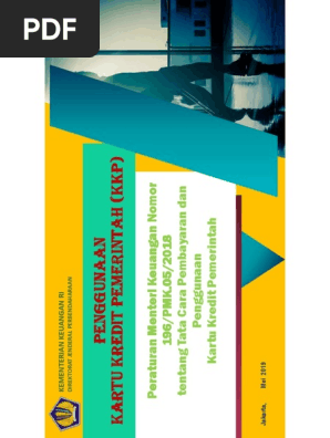 Kartu Kredit Pemerintah, Model Baru Pengelolaan Keuangan Negara 21/05/2018 10:10:24. Oleh Budi Lesmana, Pegawai Ditjen Perbendaharaan. Ditjen Perbendaharaan (DJPB) beberapa waktu lalu mengeluarkan kebijakan uji coba penggunaan kartu kredit pemerintah dalam pembayaran belanja negara. Kartu Kredit Pemerintah adalah alat pembayaran dengan menggunakan kartu yang dapat digunakan untuk melakukan pembayaran atas belanja yang dapat dibebankan pada APBN, dimana kewajiban pembayaran pemegang kartu dipenuhi terlebih dahulu oleh Bank Penerbit Kartu Kredit Pemerintah, dan. No mor 196pmk052018 tent ang tata cara pembayaran dan penggunaan kartu kredit pemerintah dengan rahmat tuhan yang maha esa menteri keuangan republik indonesia bahwa untuk melaksanakan ketentuan pasal 66 ayat 5 peraturan pemerintah nomor 45 tahun 2013 tentang tata cara pelaksanaan anggaran pendapatan dan belanja negara. PMK No. 97/PMK.05/2021 tentang Perubahan atas Peraturan Menteri Keuangan Nomor 196/PMK.05/2018 Tentang Tata Cara Pembayaran dan Penggunaan Kartu Kredit Pemerintah