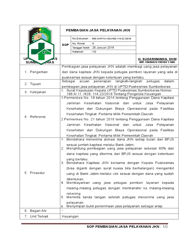 Pengelolaan Dan Pemanfaatan Dana Kapitasi Jaminan ... Jan 11, 2016 · Misalnya di suatu puskesmas terdaftar peserta JKN sebanyak 5.000 peserta, dan tarif kapitasi di puskesmas tersebut ditetapkan sebesar Rp3.000,00/peserta, maka dana kapitasi yang dibayar oleh BPJS Kesehatan setiap bulannya adalah Rp15.000.000,00 (5.000 peserta x Rp3.000,00) tanpa memperhitungkan jenis dan jumlah pelayanan kesehatan yang ... Uptd Puskesmas Jrengik: Koreksi Atas Permenkes No. 19 ... HAK atas pembagian jasa kapitasi tersebut, selebihnya (tenaga magang/sukwan) diatur tersendiri oleh Kepala Puskesmas. Karena kalau tidak diperjelas, hal ini sangat berdampak dan menjadi preseden buruk yang sangat mempengaruhi MOTIVASI dan ETOS KERJA pegawai khususnya PNS NON KESEHATAN yang sudah puluhan tahun bekerja di Puskesmas, karena Mekanisme Pembagian Dana Kapitasi Nakes Pelayanan Rawat ... Besaran dana kapitasi untuk petugas pelayanan kesehatan sangat dipengaruhi oleh jumlah nilai poin ketenagaan yang diperoleh petugas setelah melaksanakan pelayanan di Puskesmas yang dikumulatif setiap akhir bulan. Nilai poin setiap petugas berbeda dengan petugas lainnya yang dapat mempengaruhi jumlah penerimaan masing-masing nakes setiap bulannya.