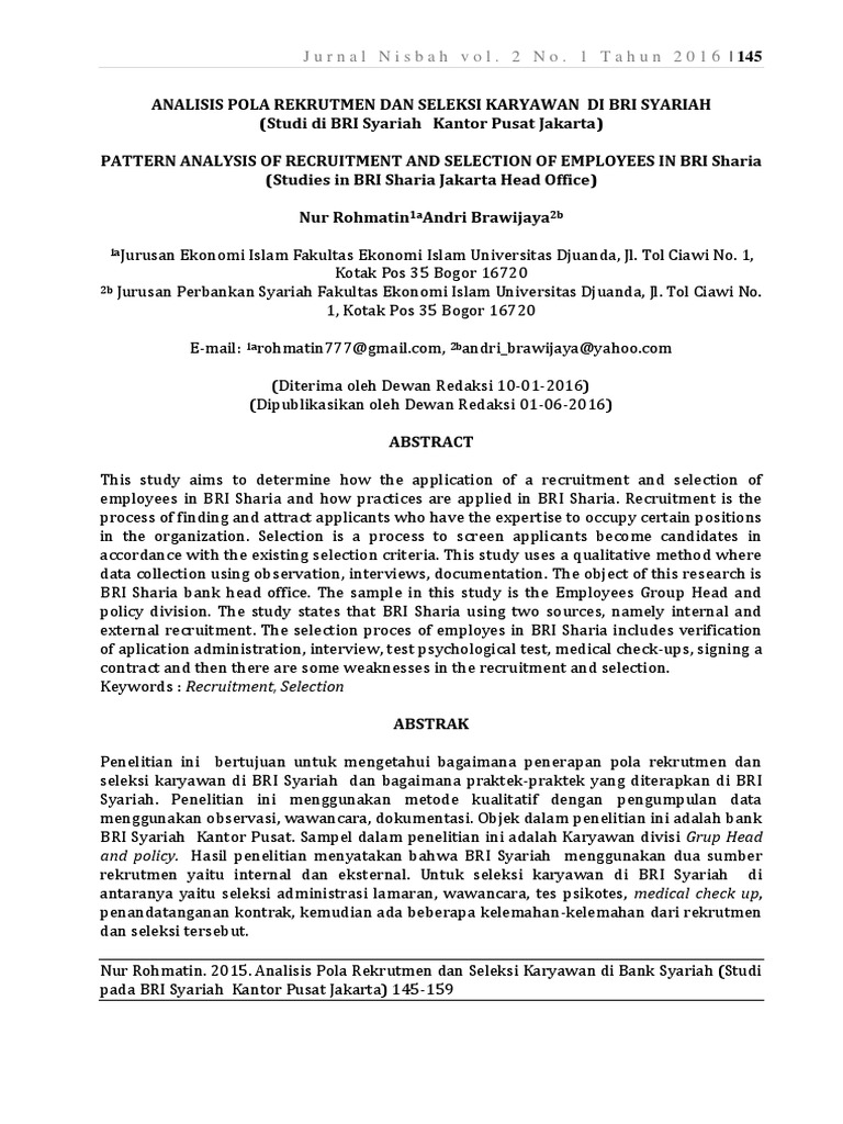Pengalaman Rekrutmen: Bank BRI Syariah (Sharia Officer...) Yaak tepat sekali, Bank BRI Syariah. Masih belum BUMN sih statusnya, masih ngikut jadi anak perusahaan bank BRI. Jadi, sekian lah pengalaman ikutan rekrutmen BRI Syariah kali ini. Sebuah pengalaman pertama rekrutmen paling jauh prosesnya setelah lulus kuliah hehe. e-recruitment BRI PT. Bank Rakyat Indonesia (Persero) Tbk TIDAK PERNAH memungut biaya apapun dan/atau bekerja sama dengan travel agent manapun dalam proses Informasi perihal lowongan pekerjaan yang tersedia di PT Bank Rakyat Indonesia (Persero) Tbk dapat menghubungi unit kerja BRI terdekat atau... Rekrutmen Pegawai Bank BRI Syariah Tingkat D3 S1 Semua... LOWONGANKERJA15.COM, Rekrutmen Pegawai Bank BRI Syariah Tingkat D3 S1 Semua Jurusan Bulan Maret 2020. Musuh terbesar diri itu bukan teman toxic atau bos dzalim, tapi pikiran negatif diri yang bikin kita gak berani melakukan terobosan dalam hidup. Rekrutmen BRI Syariah Tbk - LOKERNAS PT Bank BRI Syariah Tbk KCP Jombang Ploso Jl Raya Ploso Babat No 128, Jombang, Jawa Timur, Telp. (0321) 6836131. Rekrutmen Bank BRIsyariah FRONTLINER BRI Syariah KC […] Rekrutmen Bank Mandiri (Persero) Tbk 1. Pelaksana Performance & […]
