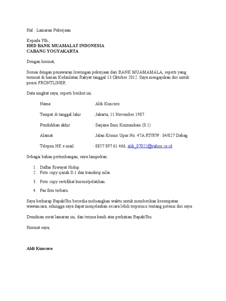 Contoh Surat Lamaran Kerja Di Bank Syariah - Format Surat contoh surat lamaran kerja di bank bri, bca , mandiri, bni dan danamon. 16 contoh surat pengantar kerja dinas rt dan berbagai urusan lain. Dengan hormat, saya dengan keterangan sebagai berikut ini : contoh surat lamaran kerja di bank syariah mandiri semarang, 07 februari 2010 yth.