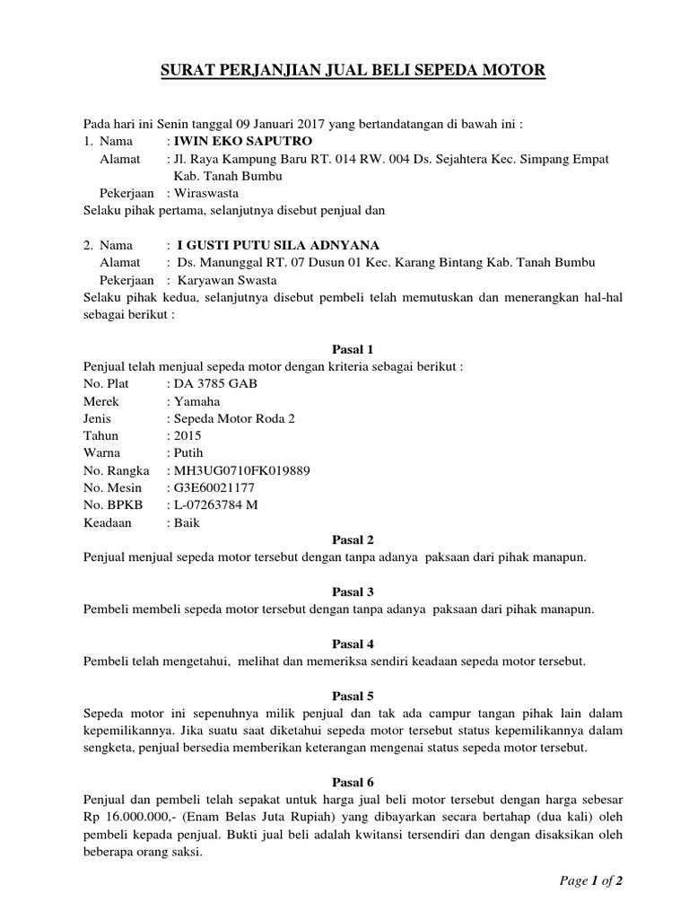 Contoh Surat Jual Beli Motor Tanpa Bpkb - Nusagates 5 Contoh Surat Perjanjian Jual Beli Rumah Barang Mobil Motor Lain. Surat Jual Beli Mobil Bagi Penjual Dan Pembeli Serta Format Contohnya. Contoh Surat Perjanjian Tukar Guling Yang Benar Dan Sah Detiklife. 16 Contoh Surat Jual Beli Mobil Bekas 2020 Contoh Surat. Contoh Surat Kuasa Lesing Motor.