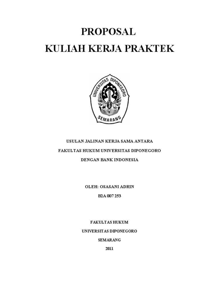 [ Contoh ] Proposal PKL / Magang di Perusahaan Contoh proposal dalam rangka melakukan riset komunikasi ke perusahaan. KATA PENGANTAR. Puji syukur senantiasa penulis panjatkan atas kehadirat Allah SWT karena berkat rahmat dan karunia-Nya penulis dapat menyelesaikan Proposal Praktek Kerja Lapangan di RS. MAGANG di BANK INDONESIA - RANDOMAIN MAGANG di BANK INDONESIA. Posted on 20 Jun 2016 by randomainsite. Bang Anton ane dapuk jadi babang pembimbing ane, minta contoh proposal sama minta diajarin ngurus surat ijin dari kampus, dan hubungin langsung kantor Bank Indonesia yang di medan lewat no kantor yang ada di... softskill.bakrie.ac.idApa kekuatan dan kelemahan Anda - Bakrie University Contoh Jawaban: Untuk kelemahan Keinginan segera menyelesaikan suatu pekerjaan atau proyek dibandingkan dengan keinginan memeriksa ulang berkali-kali setiap butir data dalam spreadsheet dapat berubah menjadi sebuah kekuatan yaitu Anda adalah seorang calon yang akan memastikan bahwa proyek ini dilakukan tepat waktu dan hasilnya mendekati sempurna . Contoh Proposal Magang dan PKL: contoh proposal magang Contoh Proposal PKL di BAZNAS. Proposal prakt I k kerja lapangan badan zakat nasional (BAZNAS) kota yogyakarta contoh proposal magang. Proposal praktik kerja lapangan kantor kementrian agama ( kabupaten sleman ) manajemen...