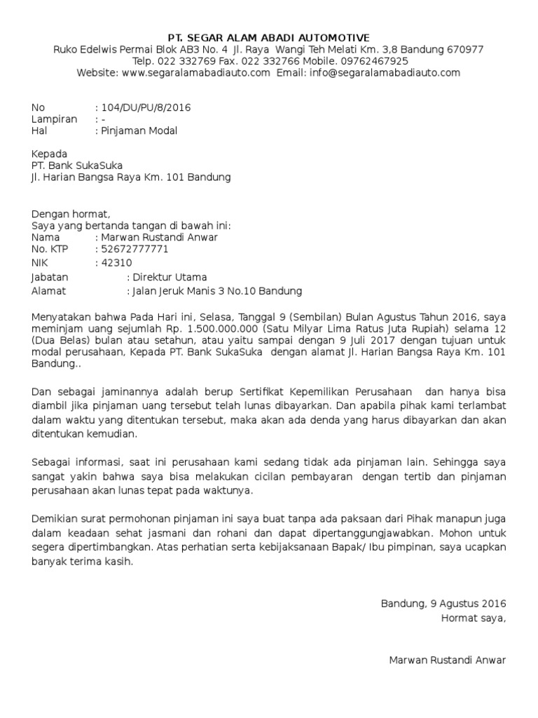 Surat Permohonan Pinjaman Uang Ke Perusahaan - Kumpulan ... Itulah surat permohonan pinjaman uang ke perusahaan yang dapat admin kumpulkan. Admin blog Kumpulan Surat Penting juga mengumpulkan gambar-gambar lainnya terkait surat permohonan pinjaman uang ke perusahaan dibawah ini.
