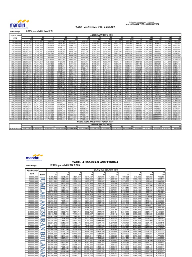 Tabel angsuran kredit multiguna mandiri
