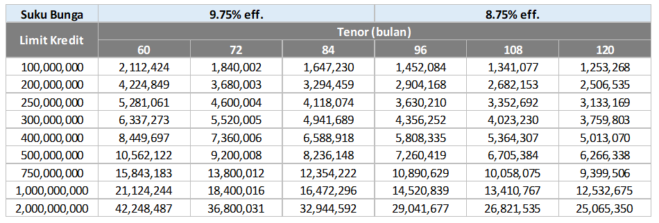 22 Tabel Angsuran Kredit Multiguna Mandiri - Info Uang Online Tabel angsuran kredit multiguna mandiri rating. Bunga kredit jaminan sertifikat rumah di bank mandiri adalah sebesar 1325. Sepertinya misalnya kredit kepemilikan rumah maka di sini bank mandiri menyasar orang maupun pegawai yang ingin memiliki rumah.