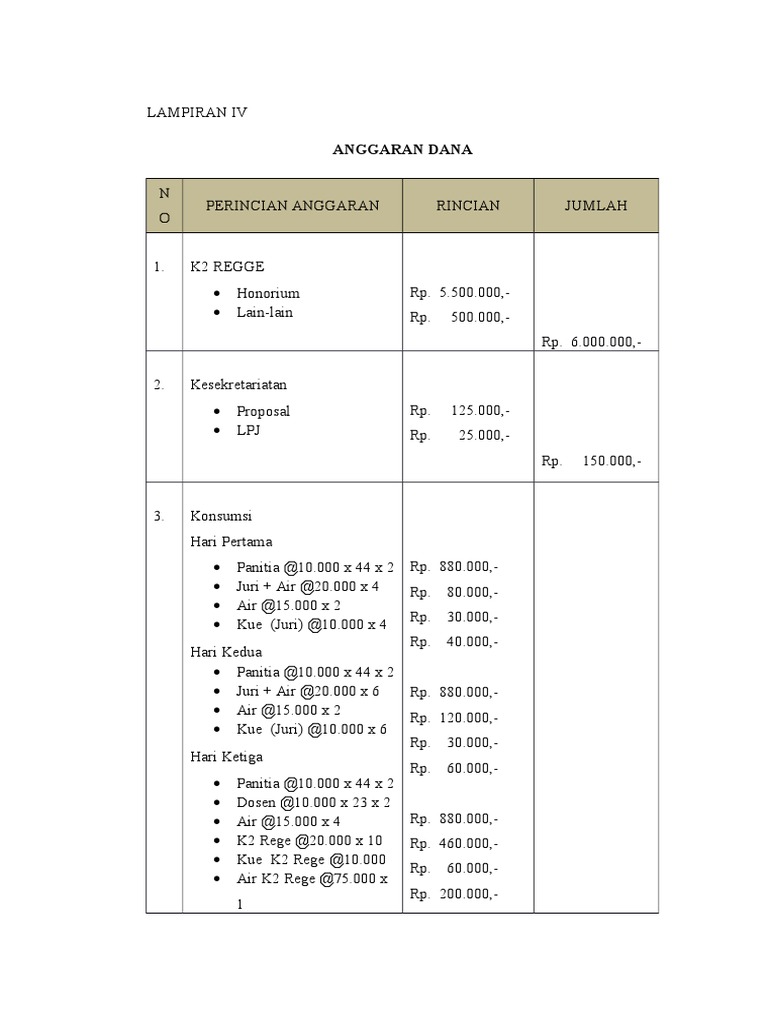 (Doc) Contoh Proposal Kegiatan beserta Struktur dan... - Nekopencil Anggaran Dana Pada anggaran dana memberikan detail rincian penggunaan dana yang diperlukan yang dibutuhkan untuk melangsungkan kegiatan tersebut. Bila perlu anggaran dana dibuat sedetail mungkin. Penutup Proposal Pada Penutupan berisi...