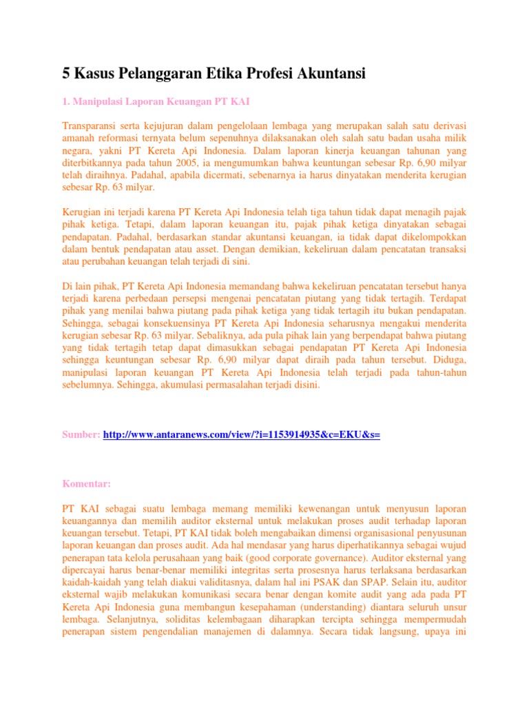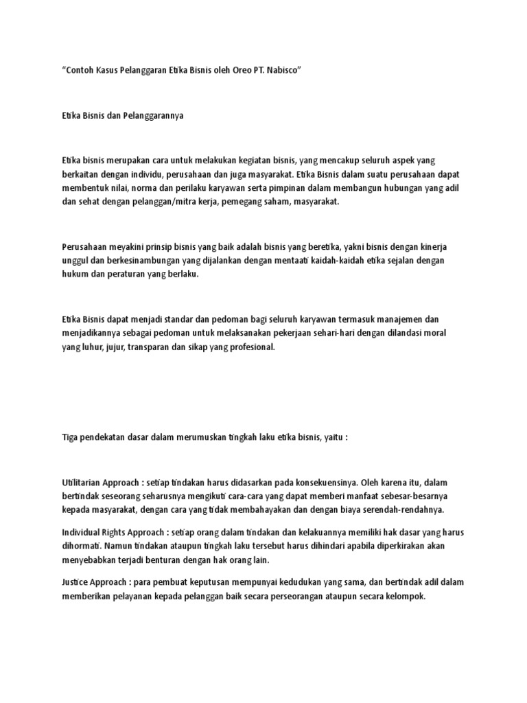 43 contoh kasus pelanggaran etika bisnis - Bisnis Terbaru 2022 Jan 07, 2022 · 43 contoh kasus pelanggaran etika bisnis. 10 Komponen-komponen komunikasi, berperan dalam proses komunikasi tak jarang menemui berbagai hambatan yang dapat membuat komunikasi menjadi tidak efektif. garuda dijatuhi sanksi oleh kemenkeu karena terbukti bersalah. 40 berita pelanggaran etika bisnis - Bisnis Terbaru 2022 Feb 10, 2022 · Kasus Tentang Etika Bisnis Terbaru 2018 Contoh kasus pelanggaran etika bisnis dan analisisnya yang berikutnya bisa dilihat dari kasus PT Garuda Indonesia yang telah terjadi pada tahun 2018 silam, di mana maskapai penerbangan milik BUMN ini telah melanggar kode etik berbisnis, yakni dengan adanya manipulasi pada laporan keuangannya.