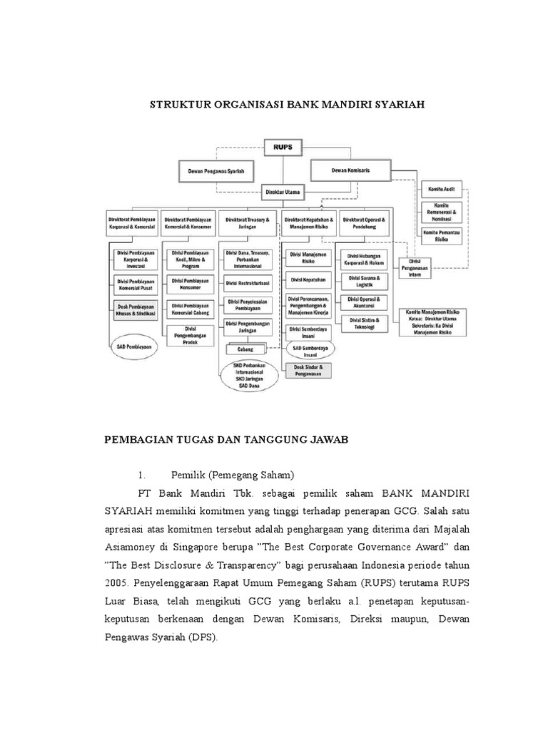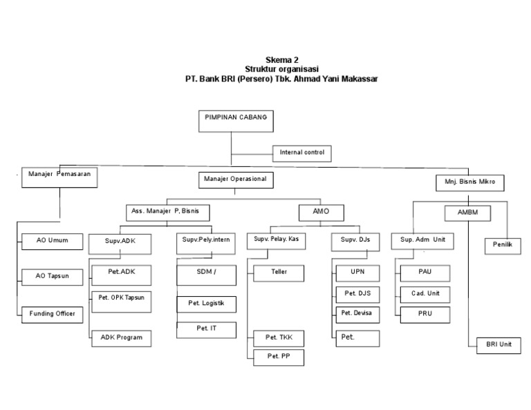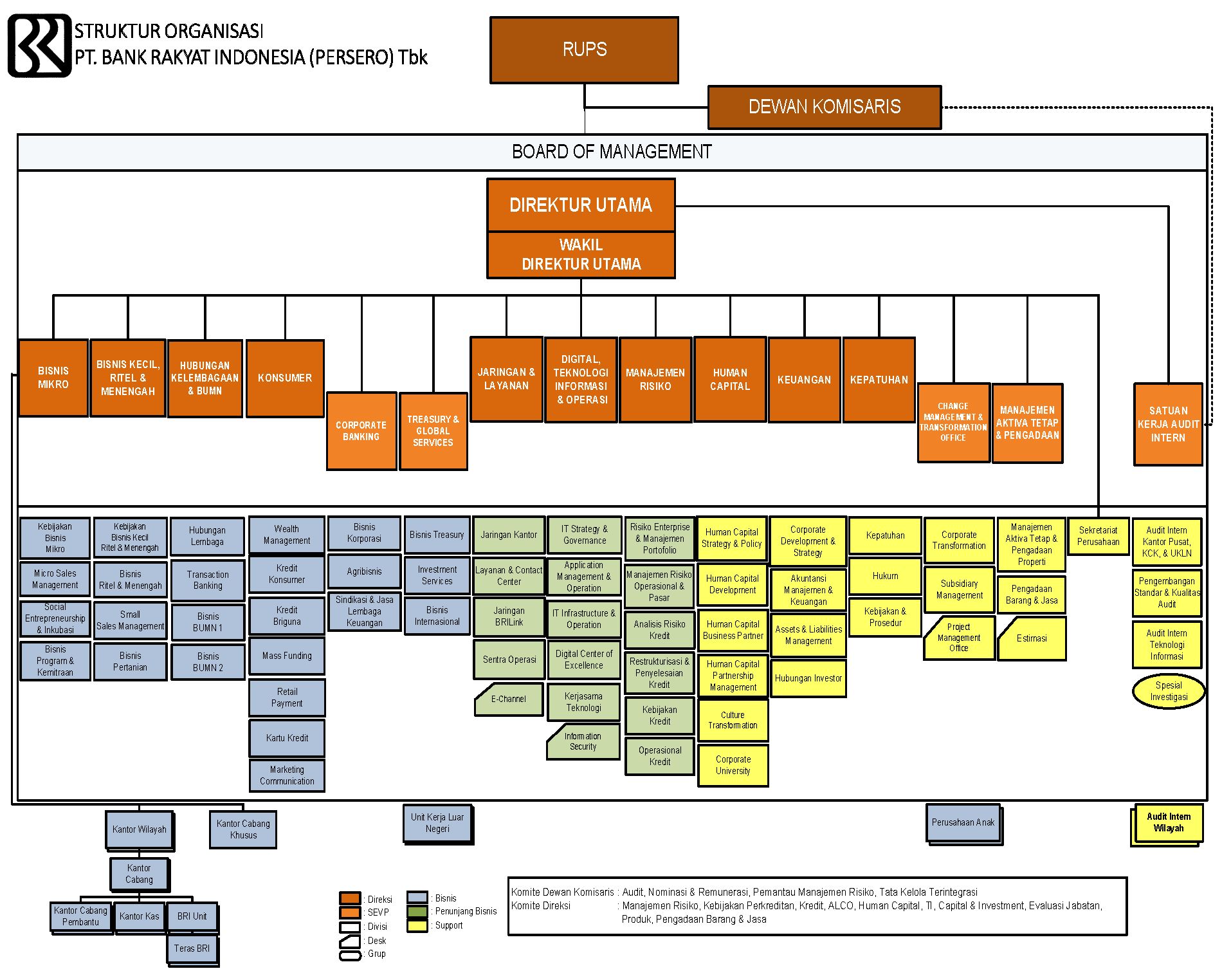 Struktur organisasi bank bri pusat. Bank Muamalat Profil Bank Muamalat. Visi & Misi. Manajemen Muamalat. Dewan Pengawas Syariah. Dewan Komisaris. Direksi. Komite Audit. Komite Nominasi dan Remunerasi. Komite Tata Kelola Perusahaan. Home - Bank BRI | Melayani Dengan Setulus Hati Struktur Tata Kelola - Bank BRI | Melayani Dengan Setulus Hati Struktur Tata Kelola - Bank BRI | Melayani Dengan Setulus Hati Tentang BRI Tata Kelola Perusahaan Struktur Tata Kelola Komite Nominasi dan remunerasi Pedoman kerja Komite Nominasi dan Remunerasi Perseroan mengatur tentang tujuan pembentukan, keanggotaan, kewenangan, tugas dan tanggun ... Komite Audit Struktur Devisional dan Fungsional PT.BRI - Anin Devila S Bagan Struktur Organisasi Manajemen Risiko BRI adalah sebagai berikut: Kecukupan Kebijakan, Prosedur, dan Penetapan Limit Kebijakan Umum Manajemen Risiko BRI (KUMR BRI) menjelaskan tentang dasar-dasar kebijakan manajemen risiko BRI dan merupakan ketentuan tertinggi bidang manajemen risiko di BRI.