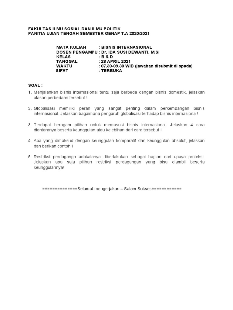 Mata kuliah bisnis internasional. Bisnis Internasional - SBM ITB Mata-mata kuliah Manajemen Fungsional dengan fokus pada Studi Bisnis dan Manajemen Internasional dalam kaitannya dengan isu-isu ASEAN dan regional. Tahap kedua memperkenalkan siswa pada setting multikultural dan memberikan pengalaman dalam melakukan bisnis dalam konteks Asia. Lingkungan_dalam_bisnis_Internasional_kel_ok.doc - MAKALAH ... Hubungan internasional secara nyata ikut berperan, mempengaruhi dan bersaing serta bekerja sama dalam bisnis internasional. I.2.Rumusan Masalah Berdasarkan pemaparan latar belakang tesebut di atas, maka dapat di rumuskan masalah sebagai berikut : 1. Pengertian Lingkungan Bisnis Internasional ? 2. Manajemen Bisnis Internasional - WordPress.com Deskripsi, Manfaat & Tujuan Mata Kuliah Mata kuliah Manajemen Bisnis Internasional mempersiapkan mahasiswa untuk menjadi seorang manajer internasional yang berpengetahuan dan dapat mengembangkan pola pikir global sehingga mampu menyesuaikan, beradaptasi dan memberikan pengarahan dengan efektif ditengah perbedaan budaya, politik dan ekonomi. Jurusan Kuliah Bisnis Internasional | Jurusan Kuliah Kuliah empat tahun di jurusan bisnis internasional akan terdiri dari berbagai topik yang akan membantu kamu memperoleh pola pikir bisnis yang kuat. Sepanjang kuliah empat tahun, mahasiswa akan mendapatkan keterampilan antarbudaya yang kuat serta memiliki kesempatan untuk menjadi bagian dari banyak proyek internasional.