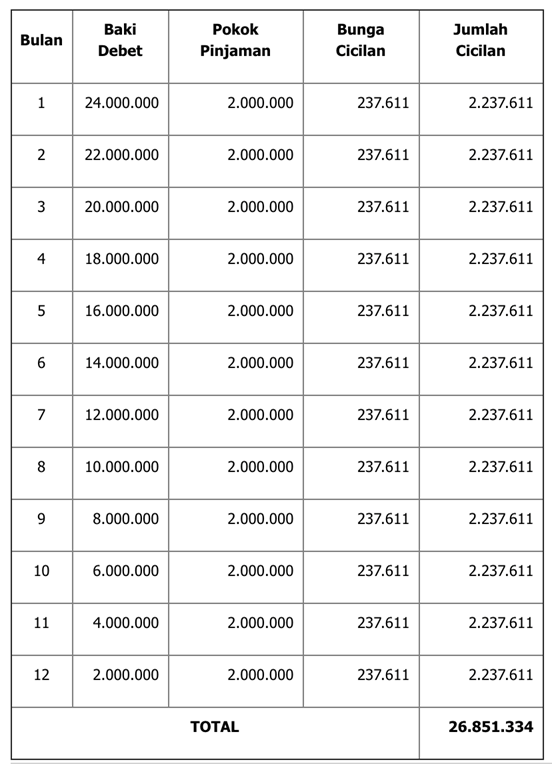 Bunga Pinjaman Bank Mandiri - Simulasi dan Tabel Pinjaman Bank Mandiri menyediakan fasilitas pinjaman tanpa agunan yang bernama Mandiri KSM. Kredit Serbaguna Mandiri atau KSM adalah kredit tanpa agunan atau KTA untuk pegawai aktif berpenghasilan tetap. Penggunaan dana pinjaman KSM ditujukan untuk membiayai berbagai keperluan yang sifatnya serbaguna, yaitu: Biaya pendidikan. Biaya pernikahan.