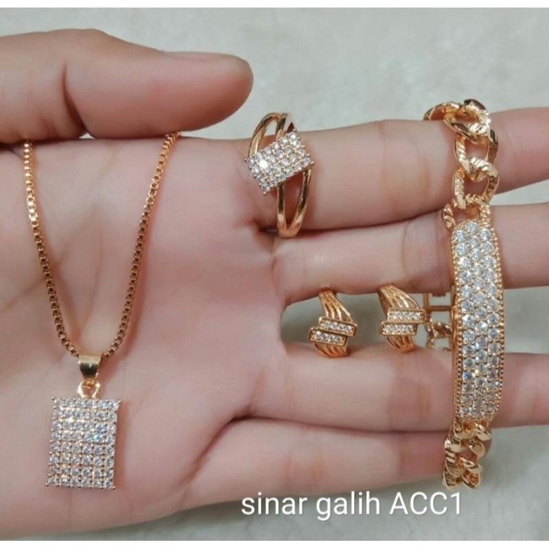 PERHIASAN EMAS KUNING SATU SET LENGKAP GELANG KALUNG ANTING CINCIN LIONTIN FASHION WANITA AKSESORIS GOLD MEWAH